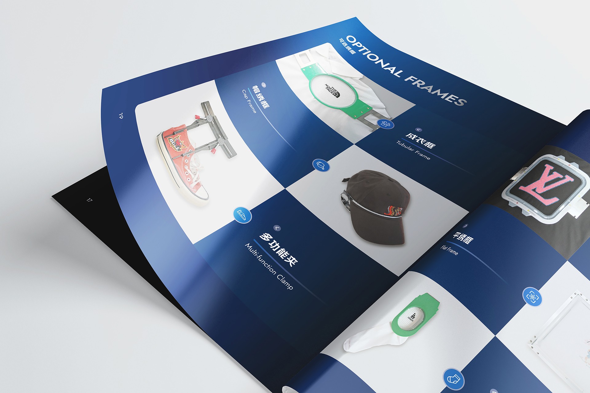 深色系工業(yè)美學(xué)視覺體系構(gòu)建: 開創(chuàng)性地采用深色背景(如深灰、墨藍(lán))作為畫冊主基調(diào)。這一選擇不僅凸顯了機(jī)械設(shè)備本身的金屬質(zhì)感與精密結(jié)構(gòu),更營造出專業(yè)、沉穩(wěn)、高端的視覺氛圍,在眾多競品畫冊中脫穎而出,極具記憶點(diǎn)。